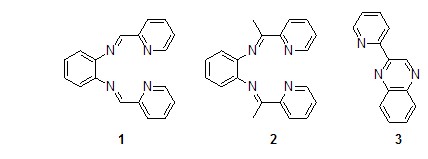 鄰苯二胺與2-吡啶甲醛反應(yīng)時(shí)得到的是n4席夫堿配體1[1],但是當(dāng)把2-吡啶甲醛換成2-乙?;拎r(shí),以氯甲酸甲酯為催化劑,在異丙醇中反應(yīng)沒有得到相應(yīng)的n4席夫堿配體2,而是得到了苯并六元環(huán)產(chǎn)物即2-(2′-吡啶基)喹喔啉3[2]。